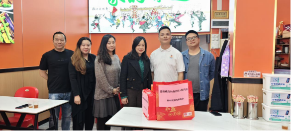 慰问组首先前往获评2025年第四批“中国好人”荣誉的黄展护“2号餐”店铺进行关怀慰问,黎雅新与黄展护亲切交谈,深入了解他在经营“2号餐”爱心温情餐馆以及开展公益志愿服务活动方面的情况。对他从乡村到城市近十年坚守的“爱心餐”以及修建青坑村的117盏路灯、为学校安装空凋助学、筹建免费理发店等公益志愿服务方面的社会影响表示认同和赞许,并寄予他继续发挥“2号餐”这一餐饮“暖心暗号”的爱心榜样效应,影响和带动身边更多餐饮门店加入“2号餐爱心餐饮店”行业,用善举帮助和鼓励更多生活困难的人走出困境、重新出发,让“2号餐”的善意成为传递城市爱心温度的文明符号。最后,慰问组向他赠送节日慰问品,祝福他在新的一年里店铺生意兴隆、吉祥如意。